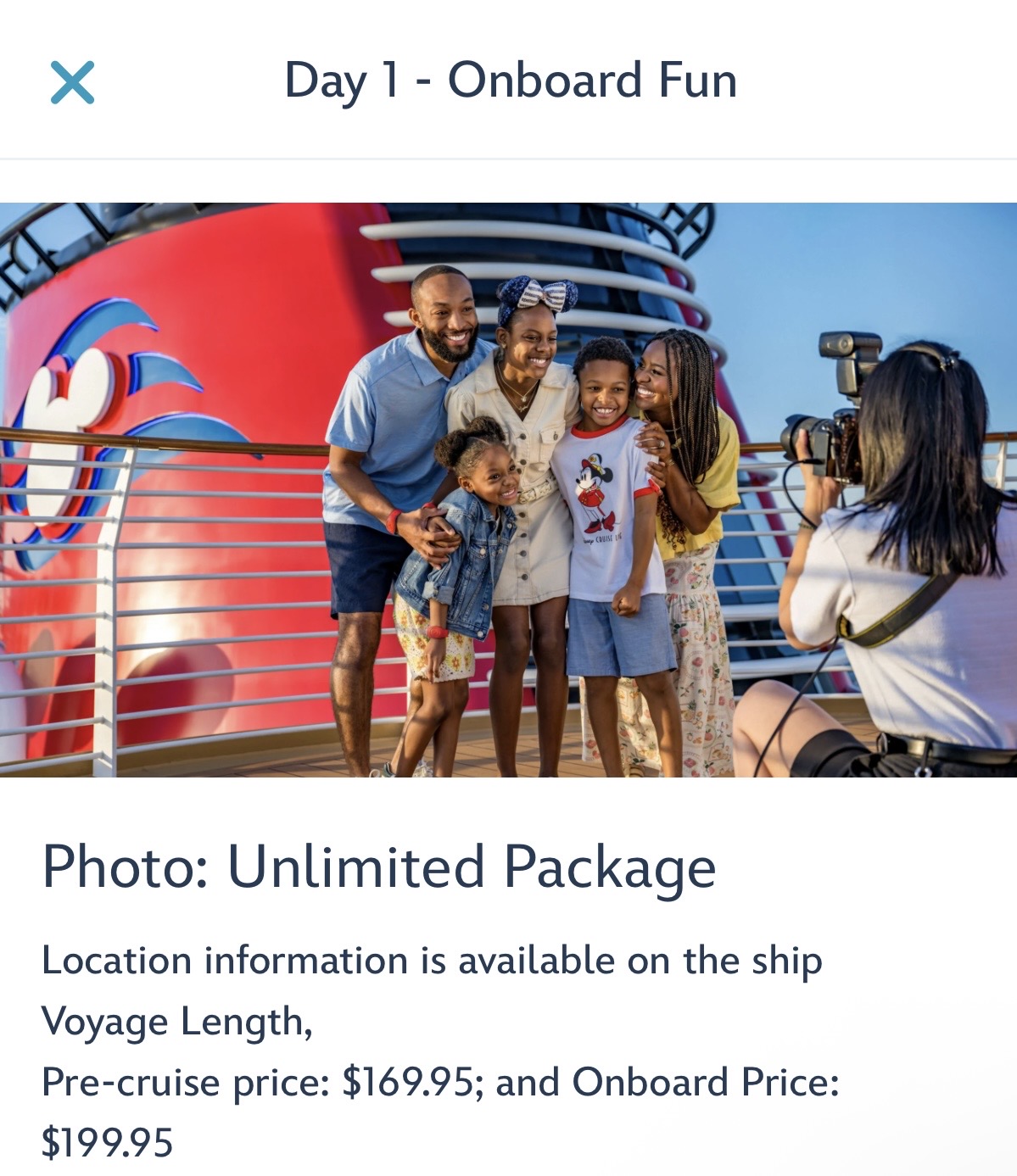 早速ですが、乗船した直後からスタッフの方に撮っていただく写真の購入についてです。
