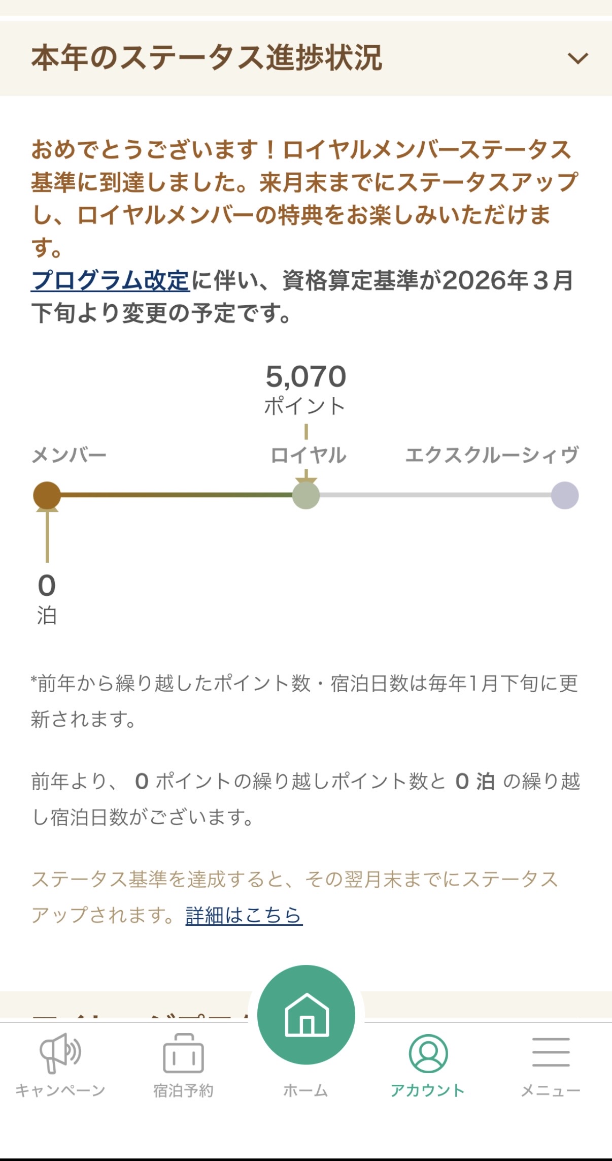 新しいプログラムの最上位ステータスであるエクスクルーシィヴ プラスを取るために必要となる実績ですが、2026年1月〜12月の間に